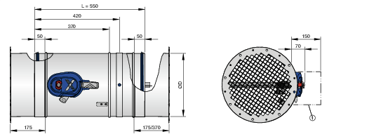 • Stiv sirkulær kapsling med stussanslutning egnet for sirkulære kanaler Stuss med leppepakning i begge ender, passer for montasje i sirkulære kanaler i henhold til EN 1506 eller EN 13180; alternativt med flens i begge ender. Flenser i henhold til EN 12220