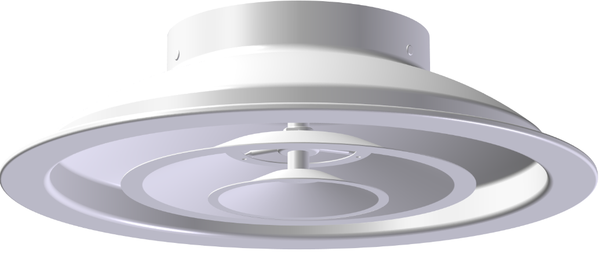FKV er en sirkulær flerkonventil for store luftmengder. Ventilen har justerbare kon så man kan stille mellom vertikal og horisontal lufttilførsel. Anbefalt installasjonshøyde er mellom 2,7 og 6 m.