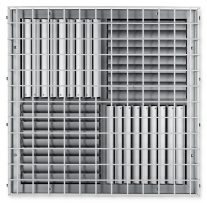 Virveldiffusorer med kvadratisk ventilfront for høye rom i komfort og industrielle soner. Kun for tilluft. Lameller i diagonalt motstående seksjoner kan justeres for luft-utblåsning fra horisontal (0°) til vertikal (90°). Horisontal luftutblåsning med høy induksjon. For fritthengende montasje eller for montasje i alle typer himlinger.